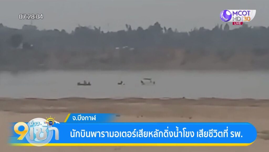 บึงกาฬ 18 เม.ย. – นักบินพารามอเตอร์เสียหลักดิ่งจมกลางน้ำโขง บึงกาฬ เร่งนำส่งโรงพยาบาลแล้วแต่สุดยื้อ เสียชีวิตที่ รพ.