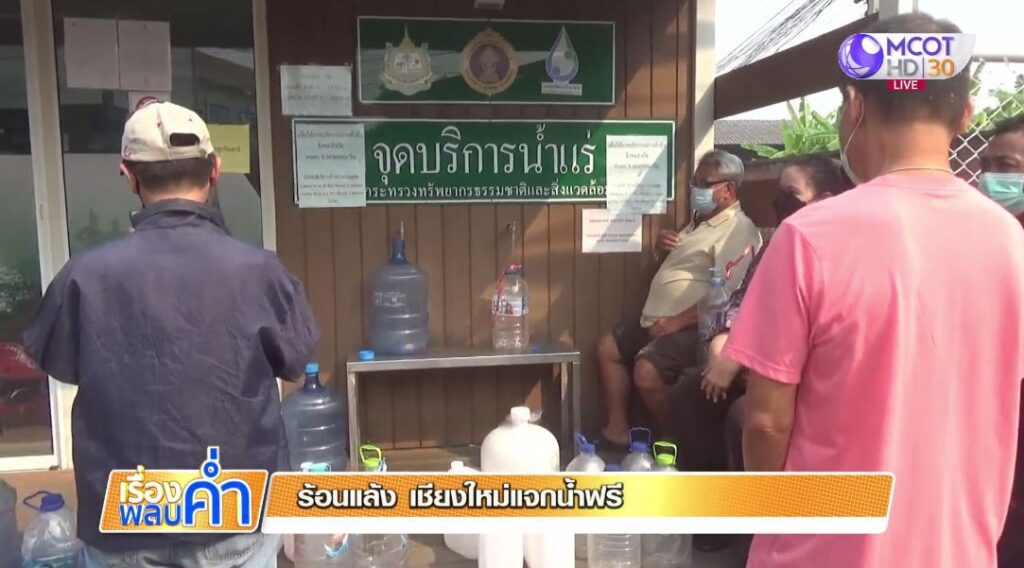 ที่สำนักงานทรัพยากรน้ำบาดาล กระทรวงทรัพยากรและสิ่งแวดล้อม จังหวัดเชียงใหม่ ย่านถนนวัวลาย มีประชาชนนำแกลลอนน้ำดื่มไปรอเข้าคิวรับน้ำแร่ ที่ให้บริการฟรี ตั้งแต่ก่อนเวลา 09.00 น. ที่เปิดให้บริการฟรี โดยจำกัดจำนวน หากเป็นแกลลอนขนาด 20 ลิตร ได้ 3 แกลลอน และแกลลอนขนาด 5 ลิตร ได้ 5 แกลลอนต่อวัน เพื่อกระจายให้ประชาชนได้ใช้น้ำอย่างทั่วถึง