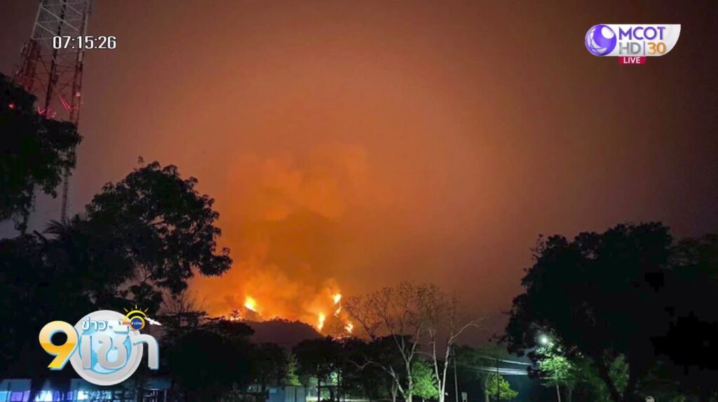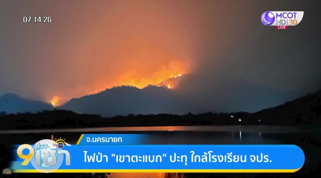 นครนายก 21 เม.ย. – ไฟป่าเขาตะแบก ฝั่งโรงเรียน จปร. จ.นครนายก ปะทุอีกครั้ง เจ้าหน้าที่จัดรถน้ำ-กำลังพล สกัด ป้องกันลุกลามบริเวณใกล้จุดเกิดเหตุ