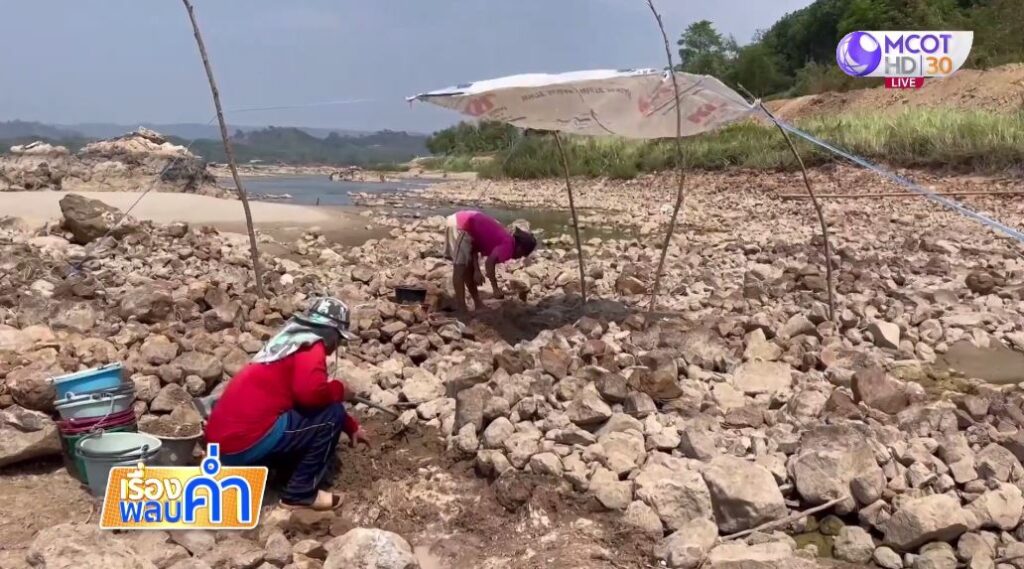 หนองคาย 26 เม.ย.- น้ำโขง จ.หนองคาย ลดลงต่อเนื่อง เหลือไม่ถึงเมตร ชาวบ้านพลิกวิกฤติเป็นโอกาส ออกร่อนแร่ทองในแม่น้ำโขง