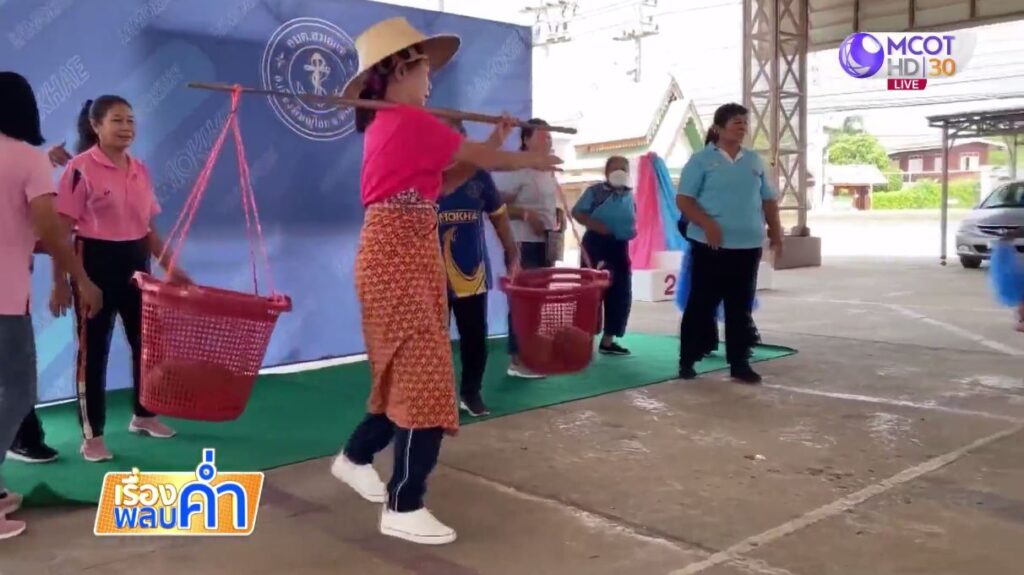 บรรยากาศการแข่งขันกีฬาแต่ละประเภทเป็นไปอย่างสนุกสนาน โดยเฉพาะกีฬาพื้นบ้านหาบคานส่งเสบียง และส่งแป้งข้ามศีรษะ เรียกส่งหัวเราะ ฟันกรามแทบค้าง. – สำนักข่าวไทย
