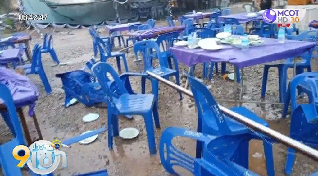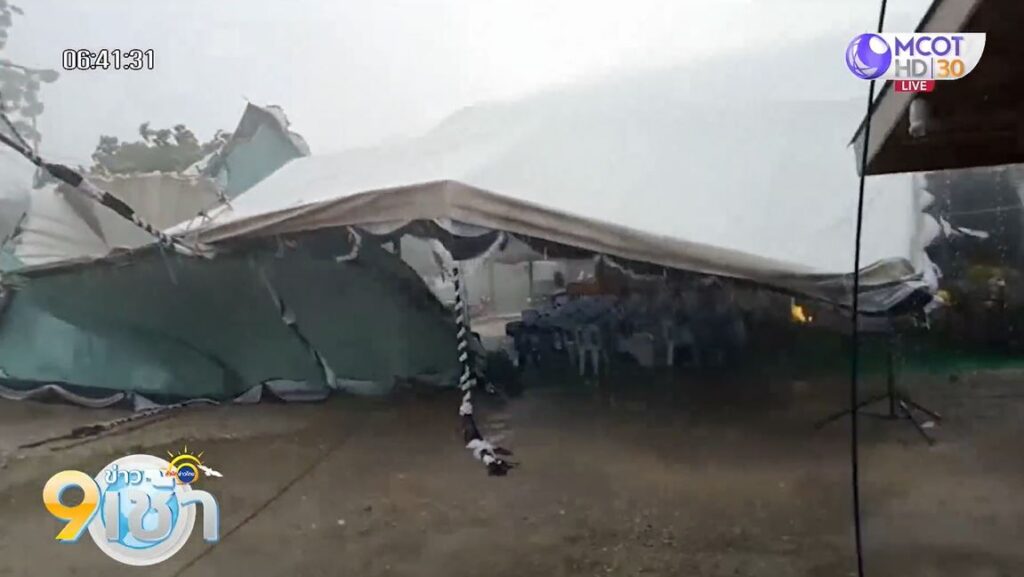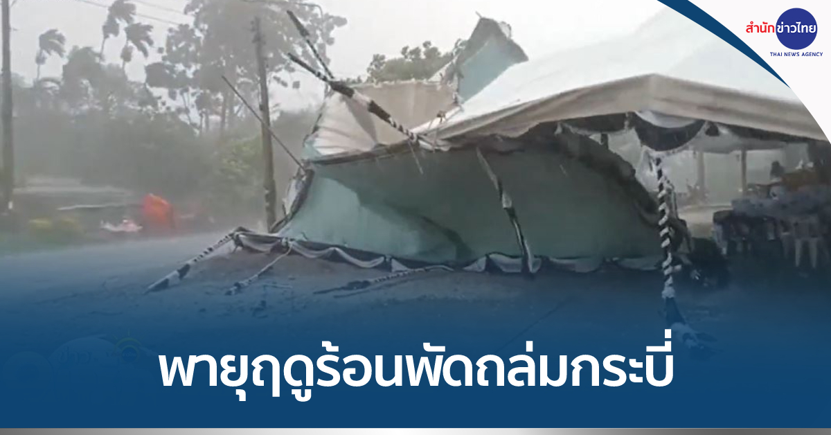กระบี่ 1 พ.ค. – พายุฤดูร้อนพัดถล่มเต็นท์งานศพใน จ.กระบี่ ล้มระเนระนาด มีผู้ได้รับบาดเจ็บเล็กน้อย 1 ราย