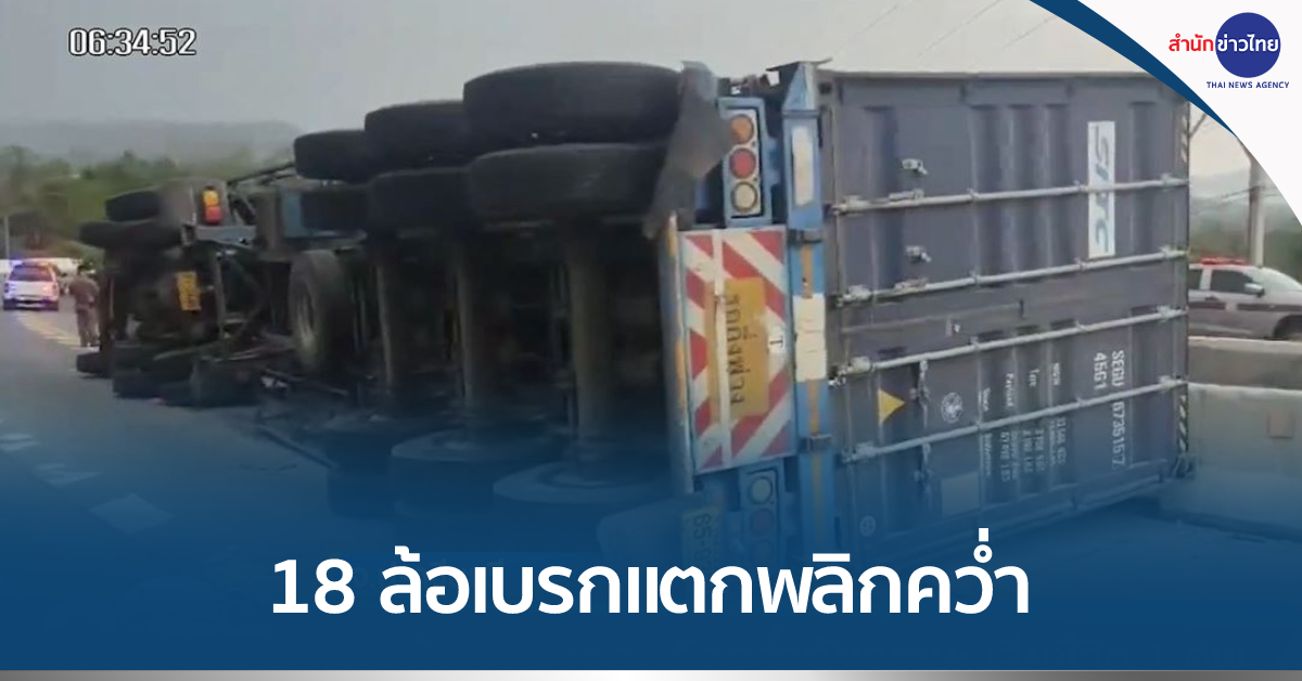 ปราจีนบุรี 2 พ.ค. – ฝนตกถนนลื่น รถพ่วง 18 ล้อ เบรกแตกเสียหลัก ก่อนพลิกคว่ำทับรถกระบะ คนขับรถพ่วงผู้เสียชีวิต 1 ราย
