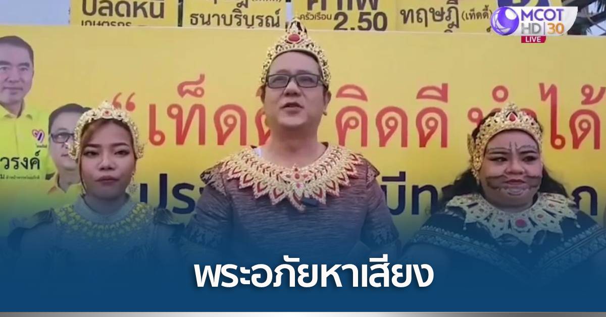 ระยอง 4 พ.ค. – ใกล้วันเลือกตั้ง ใครมีกลยุทธ์อะไรต้องงัดออกมาให้หมด อย่างผู้สมัคร ส.ส.ระยอง เขต 3 จัดเต็ม แต่งตัวเป็นพระอภัยมณี พร้อมกับนางยักษ์ นางเงือก และสุดสาคร เดินตลาดผลไม้ อ้อนขอคะแนน