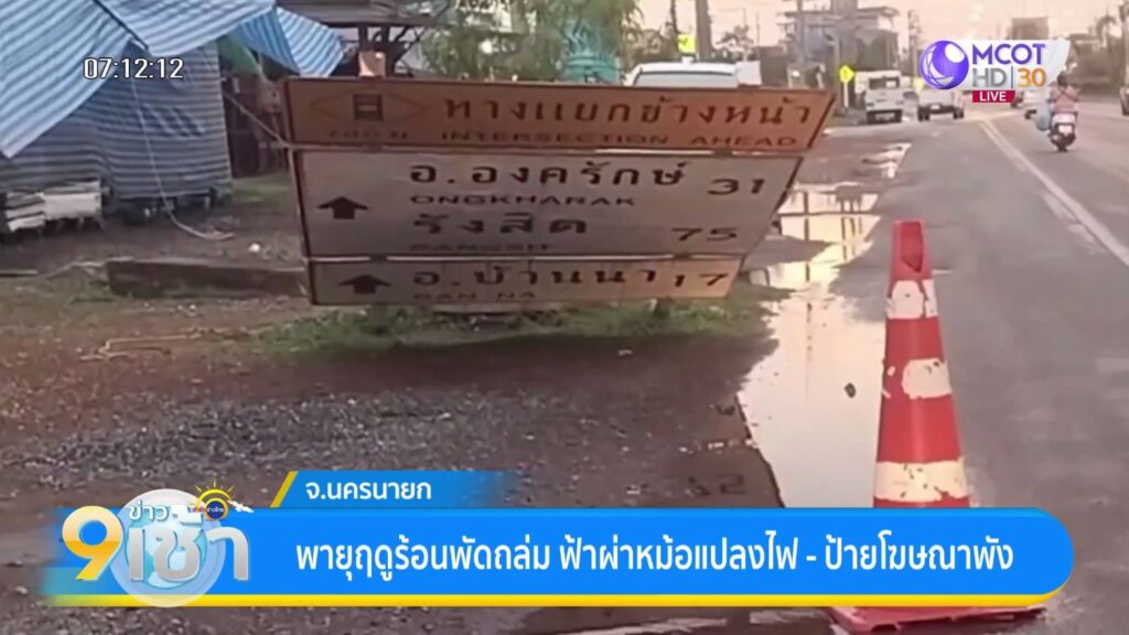 9 พ.ค. – พายุฤดูร้อนพัดถล่มนครนายก ฟ้าผ่าหม้อแปลงไฟ-ป้ายโฆษณาพัง ส่วนที่เชียงราย พายุพัดสังกะสีปลิวใส่คนขี่มอเตอร์ไซค์ ที่พะเยา เสาไฟฟ้าล้ม 7 ต้น ไฟดับเป็นวงกว้าง