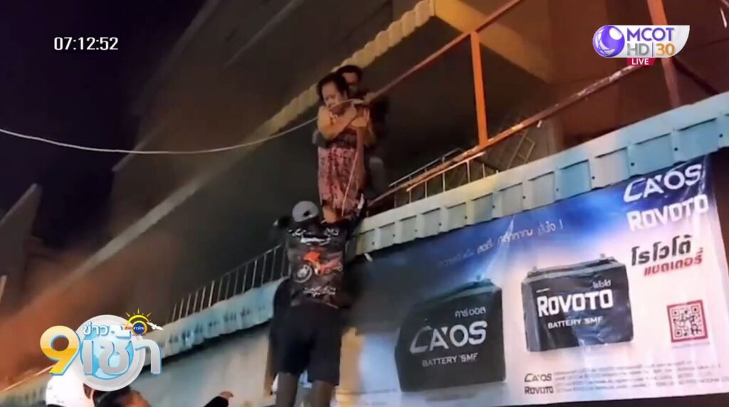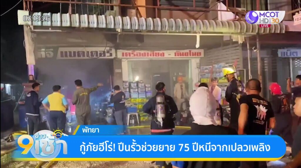 พัทยา 12 พ.ค. – นาทีชีวิต ! กู้ภัย-นักดับเพลิง ปีนรั้วช่วยคุณยายวัย 75 ปี ออกจากตึก หลังเกิดเหตุเพลิงไหม้อาคารพาณิชย์กลางเมืองพัทยา