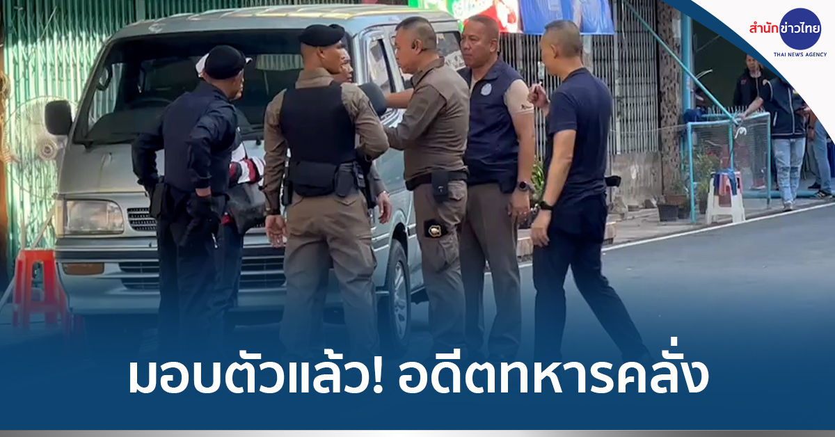 ระยอง 13 พ.ค.- ยอมมอบตัวแล้ว อดีตทหารคลั่ง หลังยิงใส่ตำรวจสองนัด ถูกบุกจู่โจม สุดท้ายยอมจำนน พบอาวุธปืน 9 มม.หนึ่งกระบอก
