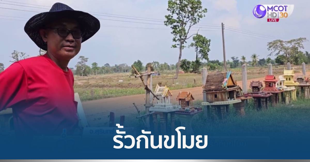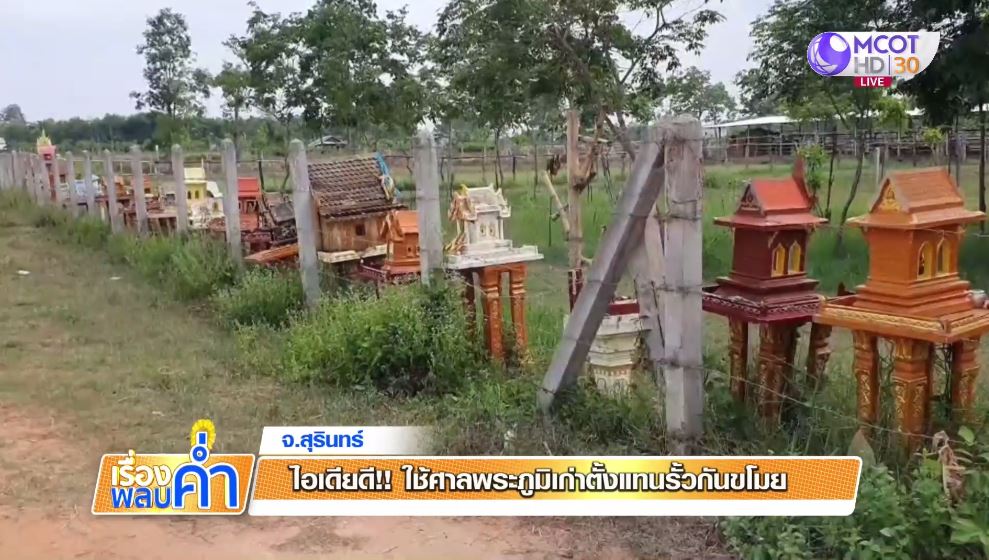 สุรินทร์ 16 พ.ค. – ไอเดียดีแปลกด้วย เกษตรกรที่สุรินทร์ นำศาลพระภูมิเก่านับร้อย มาตั้งเป็นรั้วรอบสวน หวังแก้เผ็ดหัวขโมยที่แอบเข้ามาขโมยของในสวน