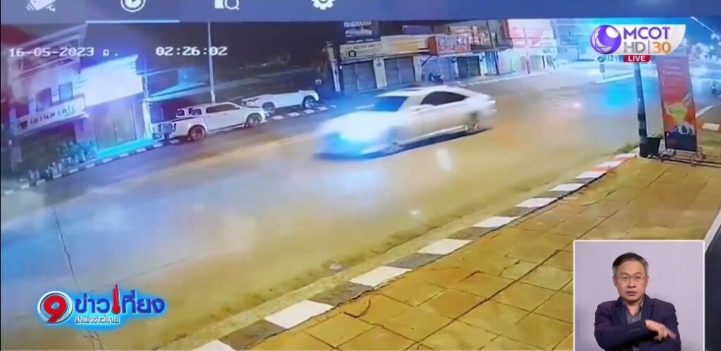 เวลา 02.23 น. ปรากกฏภาพคนขับรถของผู้ตายออกไปจากรีสอร์ต ซึ่งภาพวงจรปิดบริเวณสี่แยกสะพานวังยาว (เขตเทศบาลนครตรัง) บันทึกภาพขณะรถของผู้ตายขับนำหน้ารถยนต์กระบะของคนร้ายผ่านไป