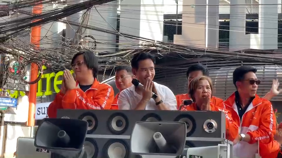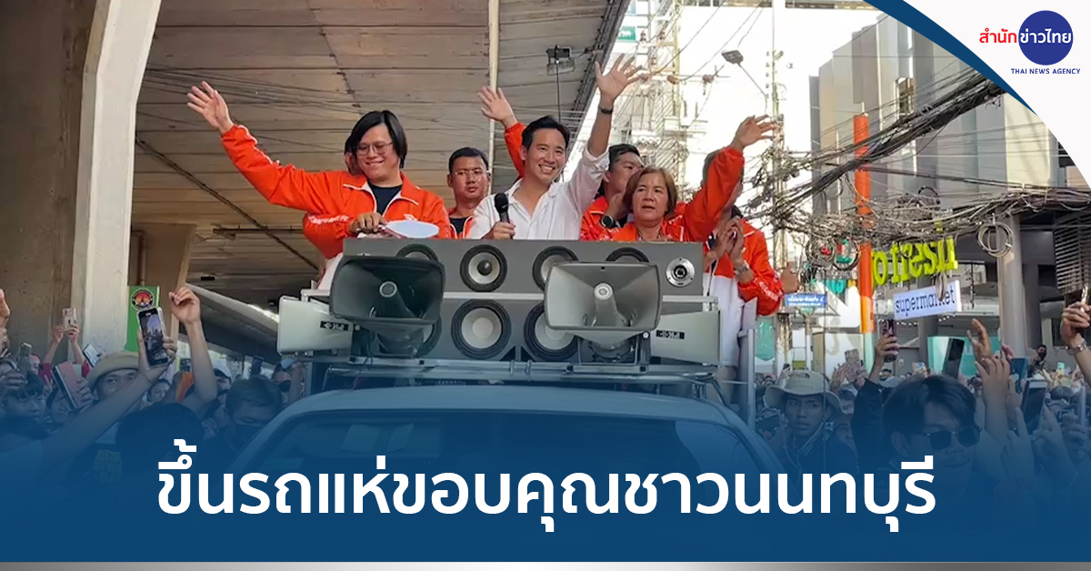 นนทบุรี 18 พ.ค.- “พิธา” นำทีมว่าที่ ส.ส.พรรคก้าวไกล ขึ้นรถแห่ขอบคุณชาวนนทบุรี ท่ามกลางแฟนคลับนับหมื่น มารอส่งเสียงให้กำลังใจ