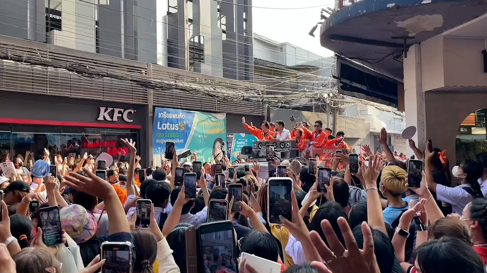 หลังจากนายนายพิธา พร้อมด้วย ว่าที่ ส.ส.นนทบุรี ทั้ง 8 คน เดินทางมาถึงบริเวณลานจอดรถห้างโลตัส ได้ขึ้นรถแห่ออกไปขอบคุณแฟนคลับ “ด้อมส้ม” ที่มีทั้งเด็กนักเรียน นักศึกษา ประชาชน วินจักรยานยนต์รับจ้าง ไรเดอร์ ที่ยืนรออยู่สองข้างทางจำนวนนับหมื่นคน ขณะขบวนรถแห่ขับผ่านกลุ่มแฟนคลับต่างโห่ร้องตะโกนลั่นพร้อมส่งเสียงเรียก “นายกฯ”