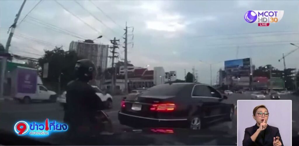 กล้องหน้ารถบันทึกภาพเหตุการณ์ที่หนุ่มหัวร้อนขับรถเบนซ์สีดำปาดหน้าขวางถนน ไม่พอใจที่ถูกคู่กรณีซึ่งเป็นหนุ่มลูกครึ่งบีบแตรใส่ เหตุเกิดถนนสายเชียงใหม่-ดอยสะเก็ด ก่อนถึงสี่แยกศาลเด็ก ตัวเมืองเชียงใหม่ และชักอาวุธปืนพกสั้นออกมาข่มขู่ จนคู่กรณีตกใจกลัว และขับรถยนต์เลี่ยงไปอีกทาง ก่อนเข้าแจ้งความร้องทุกข์ที่ สภ.แม่ปิง