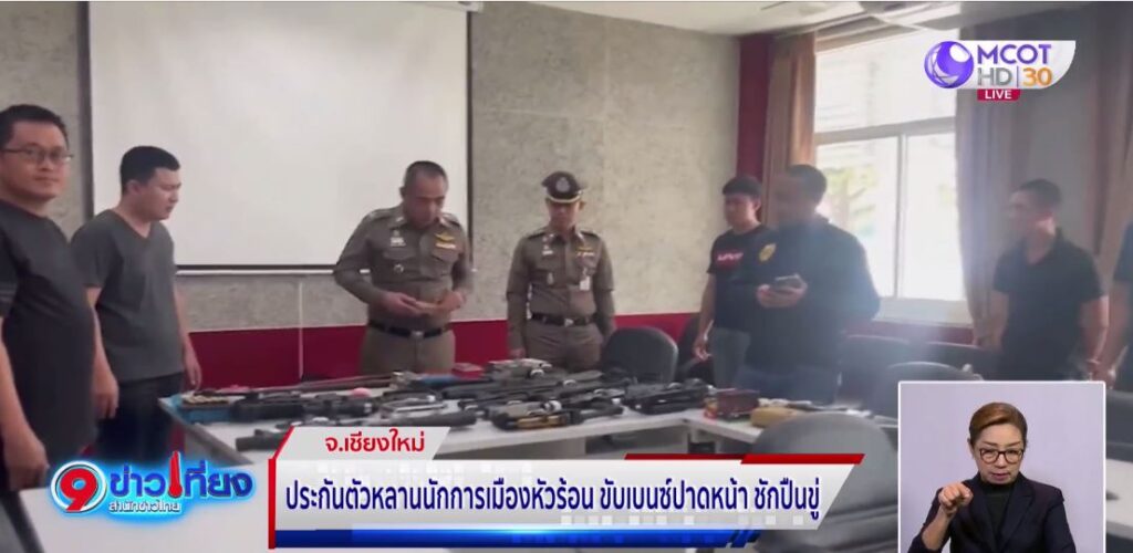19 พ.ค. – หนุ่มขับเบนซ์หัวร้อน หลานชายนักการเมืองท้องถิ่นเชียงใหม่ ขับรถปาดหน้าชักปืนขู่คู่กรณีกลางถนน หลังถูกบีบแตรใส่ ตำรวจค้นเจอปืนเต็มบ้าน หลังได้ประกันตัวยังโพสต์รูปปืนและข้อความท้าทาย