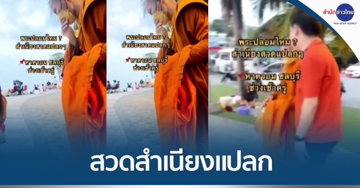 ชลบุรี 23 พ.ค. – ผู้ใช้ TikTok รายหนึ่งโพสต์คลิปใส่บาตรตอนเช้า บริเวณหาดวอนภา ติดชายหาดบางแสน ต.แสนสุข อ.เมือง จ.ชลบุรี ซึ่งในคลิปพระกำลังสวมมนต์ให้พร แต่ฟังๆ ไปแล้วสำเนียงแปลกๆ คล้ายภาษาเขมร ชาวโซเชียลต่างคอมเมนต์ว่าน่าจะเป็นพระปลอม เป็นพระเขมรอย่างแน่นอน
