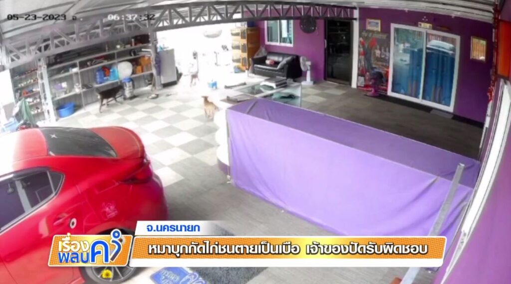 นครนายก 24 พ.ค. – เจ้าของฟาร์มไก่สุดช้ำ หมาเพื่อนบ้าน 4 ตัว บุกฟาร์มไก่ กัดแม่พันธุ์และไก่หนุ่มตายกว่า 40 ตัว มูลค่าไม่ต่ำกว่า 50,000 ลูกเจ้าของฟาร์มถ่ายคลิปตามไปถึงบ้านที่หมาวิ่งหนีไป เด็กในบ้านรับเป็นหมาของตัวเอง แต่เจ้าของบ้านบอกไม่ใช่