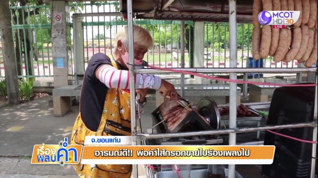 ขอนแก่น 24 พ.ค. – พ่อค้าไส้กรอกอารมณ์ดี ทั้งทำทั้งขายไส้กรอกเอง ใส่รถจักรยานยนต์พ่วงข้าง ปิ้งขายไป ร้องคาราโอเกะให้ลูกค้าฟังด้วย