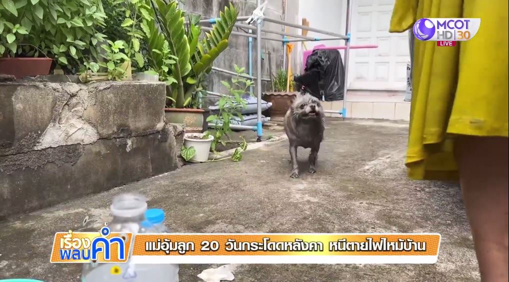 ขณะที่เจ้าของบ้านนั่งร้องไห้ ดูสภาพความเสียหายของบ้านและเสียใจที่ต้องสูญเสียน้องหมาไป 5 ตัว นางอังคนา เล่าว่า บ้านนี้อยู่กัน 4 คน คือ ก่อนเกิดเหตุช่วงตี 5 เพิ่งขึ้นไปนอนที่ชั้น 2 ก็ไม่พบสิ่งผิดปกติอะไร พอนอนไปได้สักพัก ได้ยินเสียงระเบิดดังมาจากชั้นล่าง พอลงมาดูพบว่าเพลิงกำลังลุกไหม้ที่แผงควบคุมไฟฟ้า จึงตะโกนบอกคนในบ้านว่าไฟไหม้ให้รีบหนีออกมา แต่ลูกสาวกับหลายชายหนีลงมาไม่ทัน เพราะตอนนั้นไฟเริ่มลามขึ้นชั้น 2 ลูกสาวเลยตัดสินใจอุ้มลูกกระโดดหนีลงมา