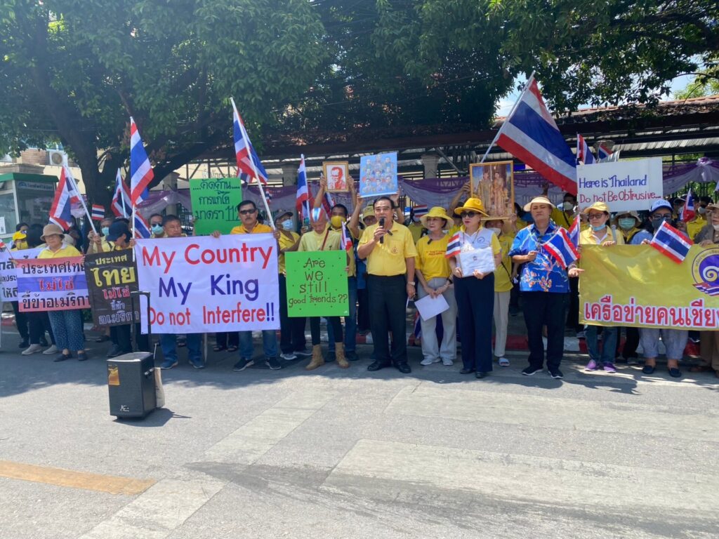 กลุ่มคนเชียงใหม่รักสถาบันนัดรวมตัวกันเดินเท้าไปยังสถานกงสุลใหญ่สหรัฐอเมริกาในเชียงใหม่ เพื่อขอให้หยุดแทรกแซงกิจการภายในของไทย โดยเฉพาะในการแก้ไขมาตรา 112 เครือข่ายคนเชียงใหม่รักในหลวงรวมตัวกันเดินเท้าตั้งแต่สี่แยกราชวงศ์ โดยทุกคนสวมใส่เสื้อสีเหลือง ชูป้ายแสดงความรักต่อสถาบันพระมหากษัตริย์ และขอให้สหรัฐหยุดแทรกแซงไทย พร้อมกับร้องเพลงปลุกใจความรักชาติตลอดทาง