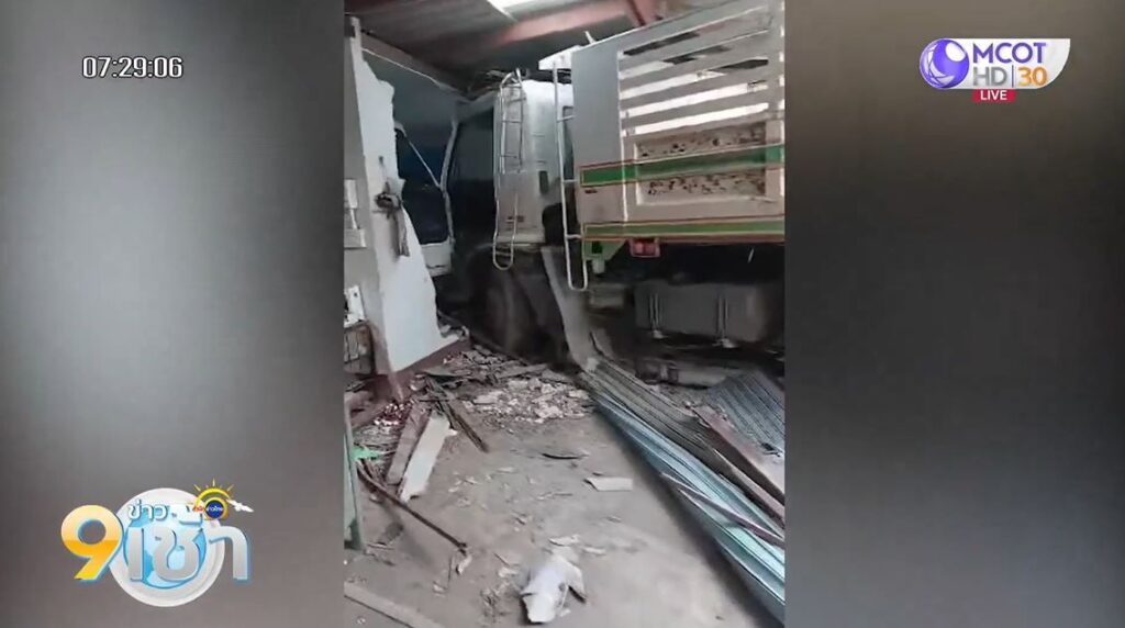 จันทุบรี 31 พ.ค. – โครมเดียว พังครืน รถบรรทุก 6 ล้อ หักหลบกระบะเสียหลัก พุ่งชนบ้านประชาชน พังถล่มเสียหายทั้งหลัง เจ้าของบ้านเผยห้องน้ำช่วยชีวิต
