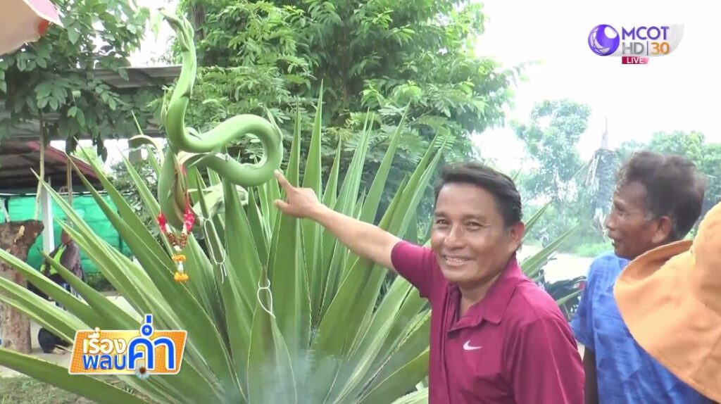 ที่บ้านของนางปัน อายุ 89 ปี บ้านโนนมาลัย ต.หินเหล็กไฟ อ.คูเมือง จ.บุรีรัมย์ มีต้นศรนารายณ์แตกยอดออกมาแปลกกว่าต้นอื่น รูปทรงคล้ายพญานาค ชาวบ้านรู้ข่าวต่างมากราบไหว้ขอโชคลาภ ส่องหาเลขเด็ด