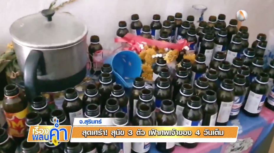ก่อนเข้าไป เจ้าหน้าที่จุดธูปเพื่อดับกลิ่นเหม็นทั่วบริเวณบ้าน พบศพชายไทยนอนขึ้นอืด มีแมลงวันตอม ทราบชื่อผู้ตายคือนายเอกวิทย์ สอนมี อายุ 45 ปี ตามร่างกายไม่พบบาดแผลหรือร่องรอยถูกทำร้าย ในห้องไม่พบการรื้อค้นทรัพย์สิน แต่พบขวดยาชูกำลังวางเรียงรายหลายขวด คาดผู้ตายใช้เป็นเครื่องเซ่นไหว้รูปปั้นพญานาคที่อยู่บริเวณโต๊ะพระ เจ้าหน้าที่สันนิษฐานว่าน่าจะเสียชีวิตมาแล้วไม่ต่ำกว่า 4 วัน