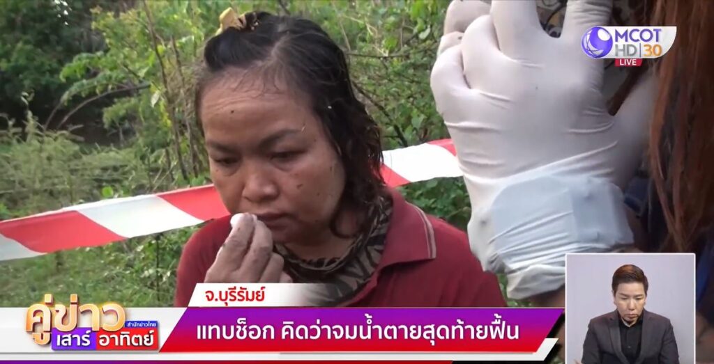 บุรีรัมย์ 11 มิ.ย. – นึกว่าผีหลอก กู้ภัย ชาวบ้านแทบช็อกหญิงจมน้ำลอยคอในลำห้วยนานเป็นชั่วโมง อยู่ดีๆ สะดุ้งฟื้น ลุกขึ้นนั่ง เผยจำได้แค่มาหาหอยในลำห้วย