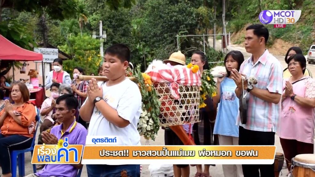 อุตรดิตถ์ 12 มิ.ย. – ชาวสวนทุเรียนลับแล ทำพิธีขอฝน สุดแปลก ปั้นแม่เมฆ พ่อหมอก เปลือยกายกลางแจ้ง จับปลาบนบก หวังให้เกิดอาเพศ จนฝนตก