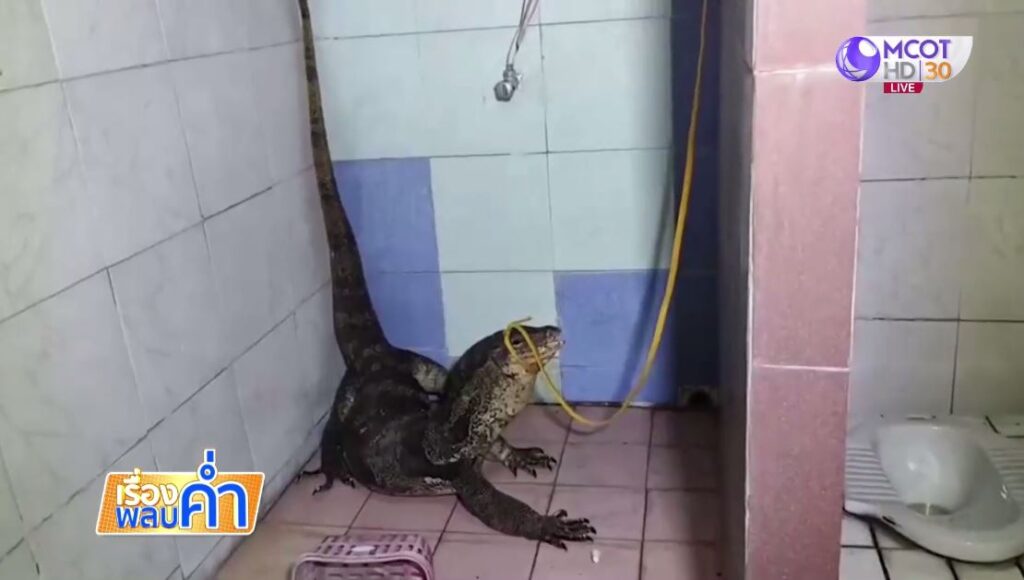 สระบุรี 13 มิ.ย. – ตัวเงินตัวทองยาวกว่า 2 เมตร โดนหมาไล่เห่า หนีเข้าไปซ่อนตัวอยู่ในห้องน้ำชาวบ้าน โร่แจ้งหน่วยล่ามาตามจับ