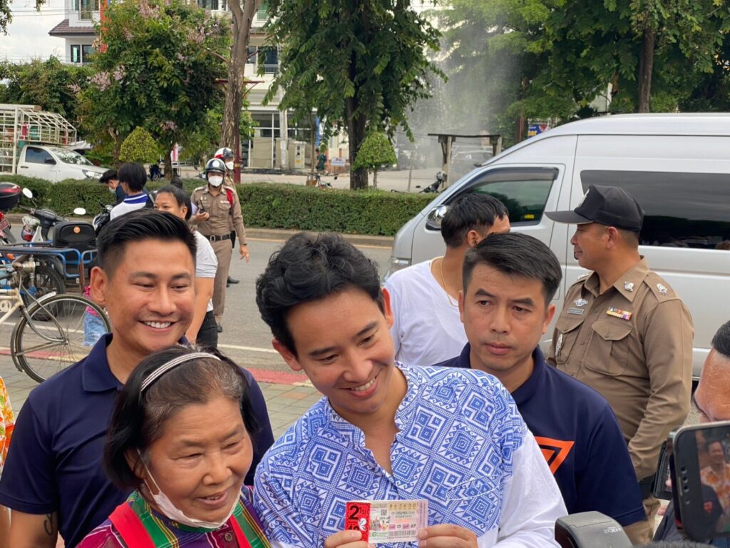 นายพิธา ลิ้มเจริญรัตน์ หัวหน้าพรรคก้าวไกล เดินทางมาจังหวัดลำพูนขอบคุณพี่น้องชาวลำพูน ที่เลือกพรรคก้าวไกล จนได้ว่าที่ส.ส.เขต 1 มาหนึ่งที่นั่ง โดยจุดแรกที่นายพิธาลงพื้นที่ คือ อนุเสาวรีพระนางจามเทวี ซึ่งมีประชาชนมารอถ่ายรูปกันเป็นจำนวนมาก บางคนนำดอกไม้และน้ำส้มมาให้กำลังใจพร้อมส่งเสียงเรียกนายกๆ ขณะที่ยายขายลอตเตอรี่ได้ขอถ่ายรูปบอกขอให้ได้เป็นนายกรัฐมนตรี โดยนายพิธาก็ได้ซื้อลอตเตอรี่ 1 ชุด เป็นเลขท้าย 30 เพราะจะได้สมกับการเป็นนายกรัฐมนตรีคนที่ 30 จากนั้นนายพิธาได้นั่งสามล้อไปยังวัดพระธาตุหริภุญชัย วรวิหาร โดยมีชาวลำพูนมารอต้อนรับตลอดเส้นทางและส่งเสียงพร้อมขอลายเซ็นถ่ายรูปกันเป็นจำนวนมาก โดยเหตุผลหนึ่งที่คนมากันเป็นจำนวนมากเนื่องจากเป็นเวลาเลิกเรียนและเลิกงาน บางคนบอกว่าพอทราบข่าวจากสื่อว่านายพิธาจะมาก็รีบมาต้อนรับพร้อมบอกว่าตัวจริงน่ารักและหล่อมาก ดีใจที่ได้เห็นว่าที่นายกฯ ตัวเป็นๆ บางคนสวมชุดสีส้ม หมวกส้ม และพัดที่มีหน้านายพิธาด้วย โดยนายพิธาได้ยกมือไหว้ขอบคุณทุกคนที่มาต้อนรับให้กำลังใจกัน