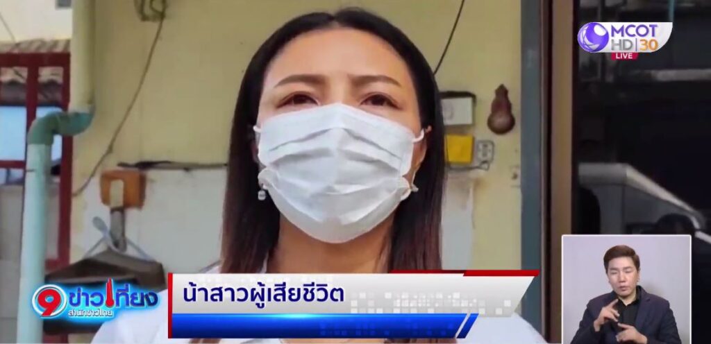 ด้านน้าสาวบอกว่าหลานทำงานเป็นเสมียนอยู่ที่ร้านขายรถแห่งหนึ่ง บอกว่าจมูกที่ทำมาก่อนหน้านี้ทะลุ จึงหาคลินิกแห่งใหม่ในอินเทอร์เน็ต มาเจอร้านนี้ จึงมาแก้ไขโดยนำซิลิโคนเก่าออกและจะนำซิลิโคนใหม่ใส่เข้าไป แต่สุดท้ายเสียชีวิต. – สำนักข่าวไทย
