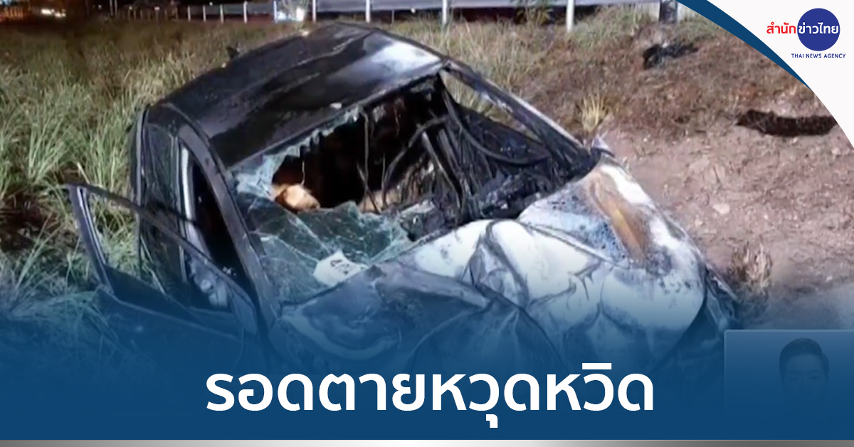 ชลบุรี 18 มิ.ย.-สองพี่น้องขับรถยนต์พุ่งชนเสาไฟส่องสว่างพลิกคว่ำตกร่องกลางถนนเกิดไฟลุกท่วม โชคดีพลเมืองดีช่วยชีวิตได้ทัน รอดตายหวุดหวิด