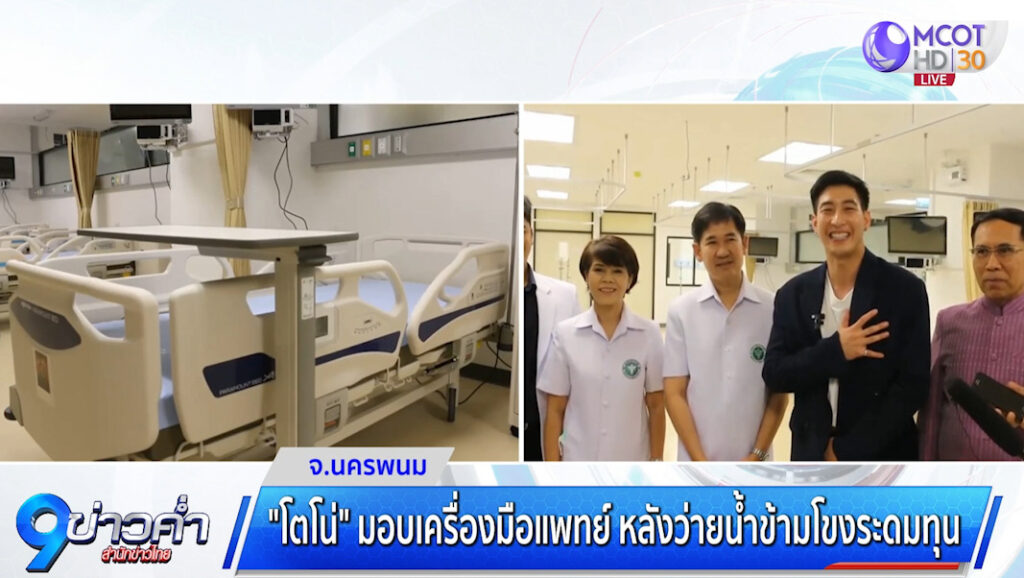 ที่โรงพยาบาลนครพนม นายวันชัย จันทร์พร ผู้ว่าราชการจังหวัดฯ เป็นประธานในพิธีรับมอบเครื่องมือและอุปกรณ์ทางการแพทย์ “รอบแรก” จากโครงการ One man and the river หนึ่งคนว่าย หลายคนให้ ว่ายน้ำข้าม 2 ฝั่งโขง (ไทย – ลาว) จากนักร้องนักแสดงหนุ่มชื่อดัง “โตโน่ ภาคิน คำวิลัยศักดิ์” เจ้าของฉายา “นักบุญลอยโขง” ท่ามกลางสักขีพยานจากทั้งหน่วยงานราชการและภาคเอกชนจำนวนมาก