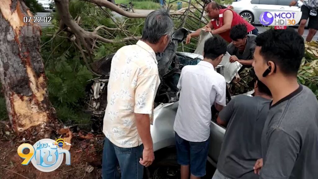 จากภาพวงจรปิดรถยนต์คันดังกล่าววิ่งมาอยู่เลนขวา เมื่อมาถึงที่เกิดเหตุ จู่ๆ รถขับตกลงไปในร่องกลางถนนพุ่งเข้ากับต้นใหญ่อย่างจัง สภาพหน้ารถพังยับ พบว่าภายในรถมีคนขับและผู้โดยสารนั่งมาหลายคน รวม 4 คน อาสาสมัครกู้ภัยได้ใช้เครื่องตัดถ่างพยายามจะช่วยคนที่อยู่ในรถ แต่เมื่อเปิดรถออกก็พบว่าไม่มีผู้รอดชีวิตแล้ว