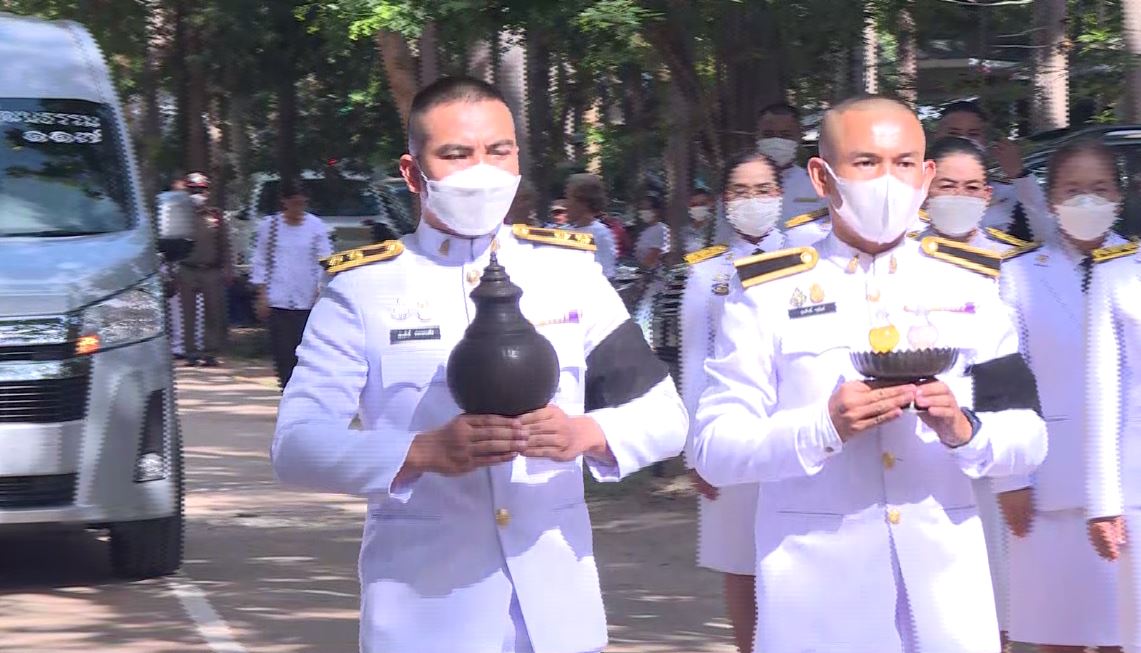 จากนั้น เวลา 16.00 น. ผู้ว่าราชการจังหวัดยโสธร อัญเชิญน้ำหลวงอาบศพและพวงมาลาพระราชทานของพระบาทสมเด็จพระเจ้าอยู่หัว และสมเด็จพระนางเจ้าฯ พระบรมราชินี พร้อมพระบรมวงศานุวงศ์ทุกพระองค์ โดยมีหลวงปู่ประสาร สุมโน วัดป่าหนองไคร้ เป็นประธานฝ่ายสงฆ์