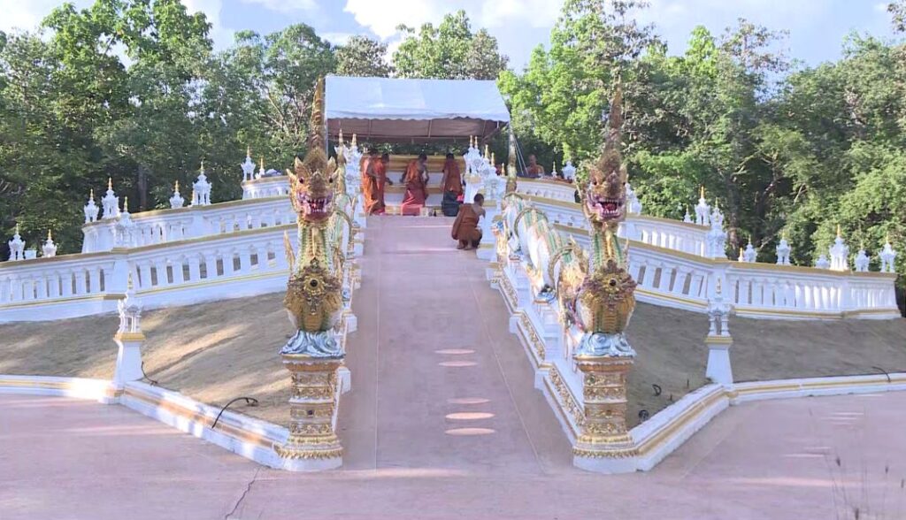 ทีมข่าวเดินทางไปสำรวจเมรุชั่วคราวที่หลวงปู่แสงได้ดำริให้สร้างไว้ตั้งแต่ปี 2564 เพื่อเตรียมความพร้อม โดยหลวงปู่เป็นผู้ชี้จุดสร้างด้วยตนเอง หลังจากเสร็จพิธีก็จะทำเป็นอนุสรณ์สถานให้ศิษยานุศิษย์ได้ระลึกถึงความจริงของมนุษย์
