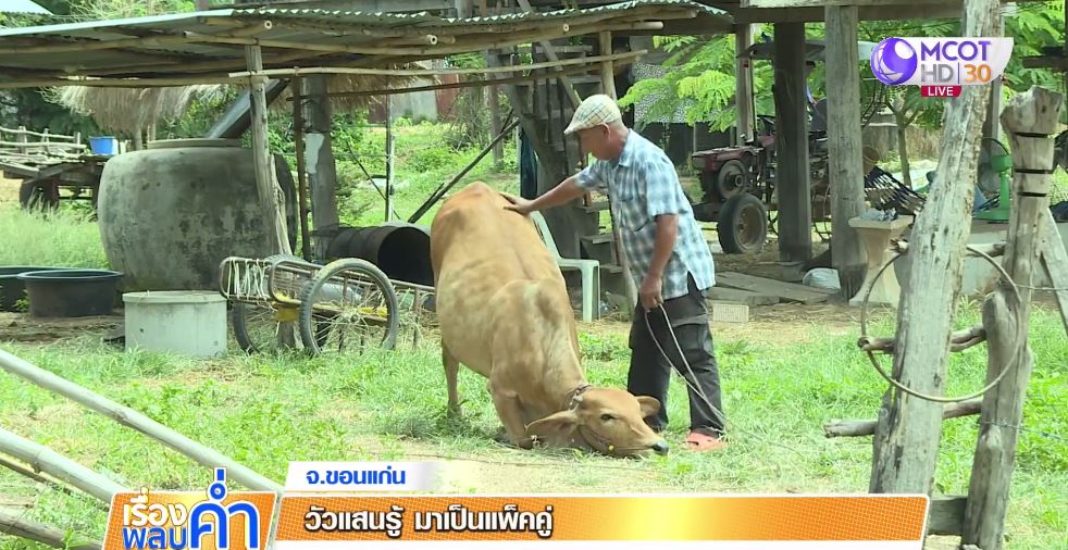 ขอนแก่น 23 มิ.ย. – ฮือฮา วัวแสนรู้ของผู้ใหญ่มังกร อ.น้ำพอง จ.ขอนแก่น ตัวเมียชื่อ “มีนา” อายุ 1 ปี 3 เดือน อีกตัวชื่อ “เจ้าโบ๊ท” เพศผู้ อายุ 9 เดือน ทำตามคำสั่งอย่างว่าง่าย และยังใส่แอกไถนาได้ด้วย