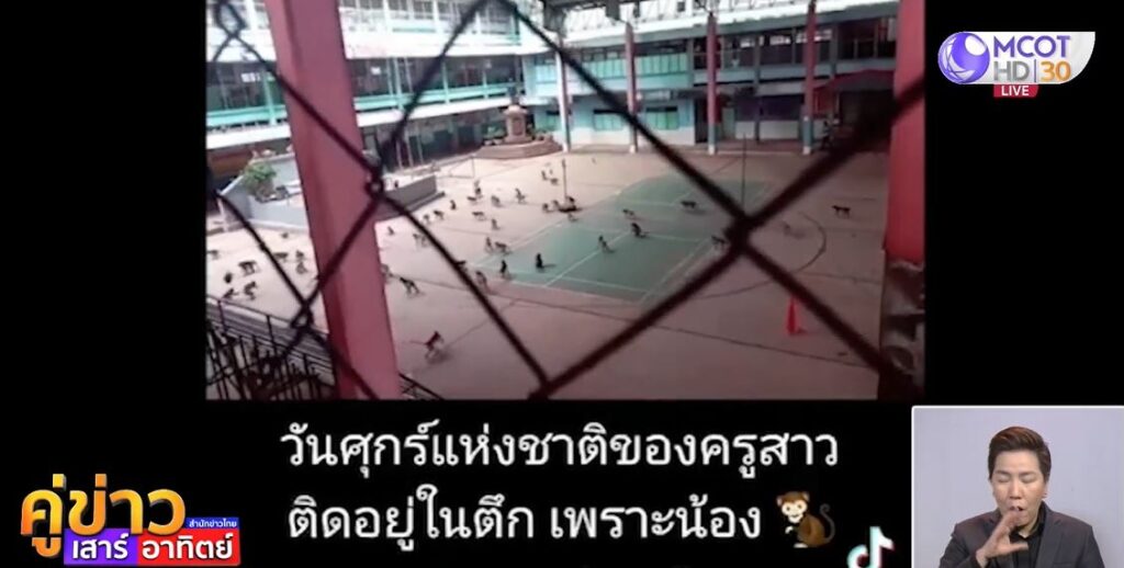ส่วนคลิปที่ลงในโซเชียลเป็นช่วงเลิกเรียน วันนั้นครูเลิกช้า กำลังจะกลับบ้านเห็นฝูงลิงแห่เข้ามาอาศัยพื้นที่ใต้โดมของโรงเรียน โดยลิงเหล่านี้มาถ่ายอุจจาระที่นี่แทบทุกเย็น วอนหน่วยงานที่เกี่ยวข้องช่วยดูแลแก้ไข.-สำนักข่าวไทย