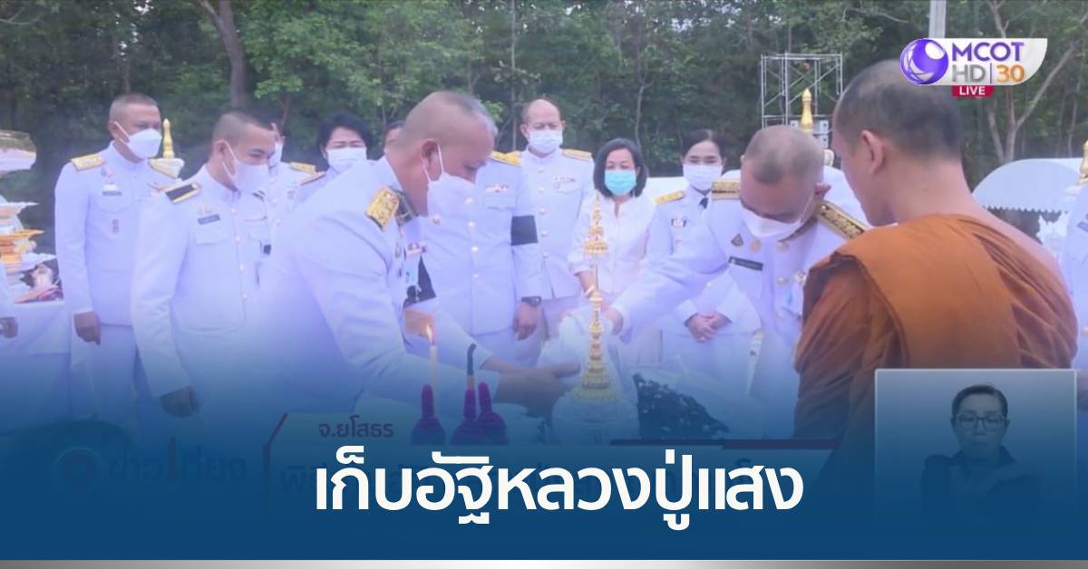 บรรยากาศที่วัดป่าดงสว่างธรรม ต.โคกนาโก อ.ป่าติ้ว จ.ยโสธร เช้านี้มีพิธีเก็บอัฐิของหลวงปู่แสง ญาณวโร ภายหลังมีพิธีพระราชทานเพลิงศพ เมื่อช่วงเย็นวานที่ผ่านมา โดยมีญาติธรรม พระอุปัฏฐาก ศิษยานุศิษย์มาร่วมเก็บอัฐิ กล่าวคำขอขมากรรม นำบรรจุอัฐิใส่โกศ พบว่าอัฐิหลวงปู่แสง มีสีขาวสะอาดบริสุทธิ์ จากนั้นอัญเชิญไปศาลาบำเพ็ญกุศล เตรียมส่งมอบไปวัดที่หลวงปู่แสงเคยจำพรรษา และมอบให้ลูกศิษย์เก็บไว้ ขณะที่ประชาชนที่เข้ามาร่วมพิธีได้ขอถ่ายรูป เพื่อเก็บไว้กราบไหว้บูชา
