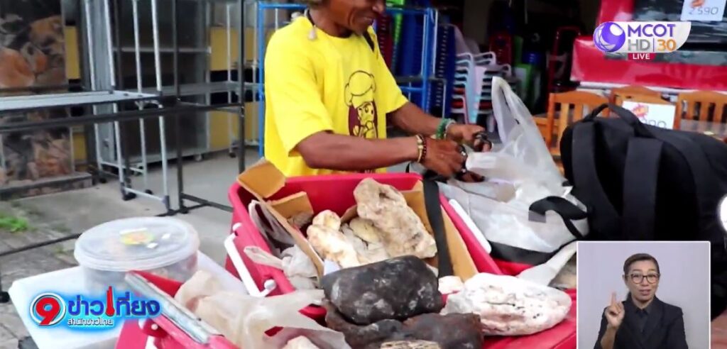 พังงา 27 มิ.ย. – หนุ่มหมอนวดริมหาดเกาะสมุย สะสมอ้วกวาฬ หรืออำพันทะเล หลากหลายชนิด น้ำหนักรวมกว่า 50 กิโลกรัม หากเป็นของจริง คาดมูลค่ากว่า 50 ล้านบาท
