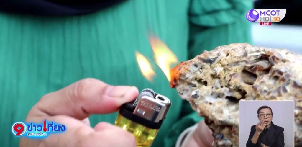 ผู้สื่อข่าวลงพื้นที่ไปที่ตลาดโคกกลอย อ.ตะกั่วทุ่ง จ.พังงา พบกับนายประพฤติ ศรีทัดรัตน์ หมอนวดริมชายหาด กำลังนำก้อนที่บอกว่าเป็นอ้วกวาฬหลากหลายชนิด ที่บรรทุกมาในรถสามล้อพ่วงข้าง ออกมาโชว์ พร้อมอธิบายว่า เป็นอำพันทะเลชนิดต่างๆ เช่น อำพันหนวดหมึกยักษ์ อำพันทองไข่หมึก อำพันเกสรดอกไม้ พร้อมกับให้คนร่วมกันพิสูจน์ ซึ่งการพิสูจน์เบื้องต้น คือการนำไฟลนอ้วกวาฬ ก็จะพบว่าผิวอ้วกวาฬที่โดนความร้อนจะละลายเป็นสีน้ำตาลคาราเมล มันวาว มีความเหนียวยืดอย่างเห็นได้ชัด และมีกลิ่นบางคนบอกคล้ายไม้หอมบ้าง หอมแบบแปลกๆ บ้าง