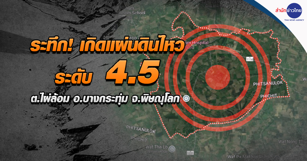 กองเฝ้าระวังแผ่นดินไหว กรมอุตุนิยมวิทยา รายงานว่า เกิดแผ่นดินไหวขนาด 4.5 ความลึกเพียง 5 กิโลเมตร จุดศูนย์กลางอยู่ที่ ต.ไผ่ล้อม อ.บางกระทุ่ม จ.พิษณุโลก เมื่อเวลาประมาณ 00.17 น. วันนี้ (29 มิ.ย.66) โดยได้รับรายงานความรู้สึกสั่นไหว บริเวณ จ.พิษณุโลก พิจิตร กำแพงเพชร นครสวรรค์ และเพชรบูรณ์ เบื้องต้นยังไม่มีรายงานความเสียหาย
