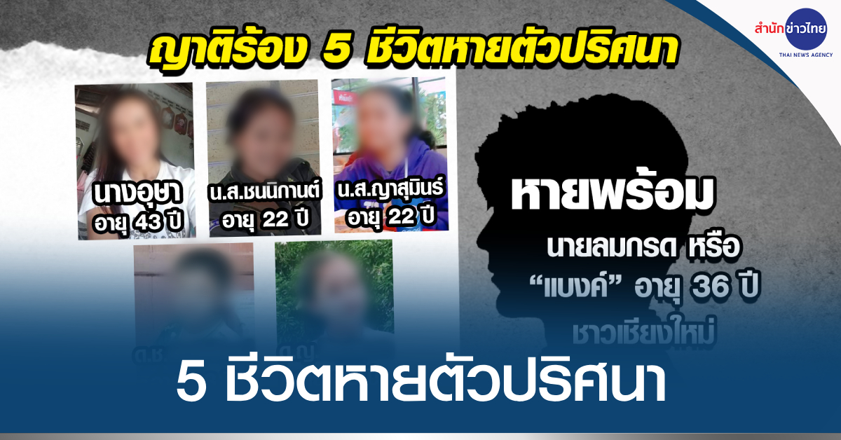 ขณะที่มีรายงานจากชุดสืบสวนฯ ว่า ผู้ที่หายตัวไปมีปัญหาเรื่องหนี้สิน และนำที่ดินของญาติคนหนึ่งไปขาย อย่างไรก็ตาม ประเด็นที่น่าเป็นห่วง คือ ไม่สามารถติดต่อทั้ง 5 คนได้ และตอนนี้ยังไม่ทราบชะตากรรม. – สำนักข่าวไทย
