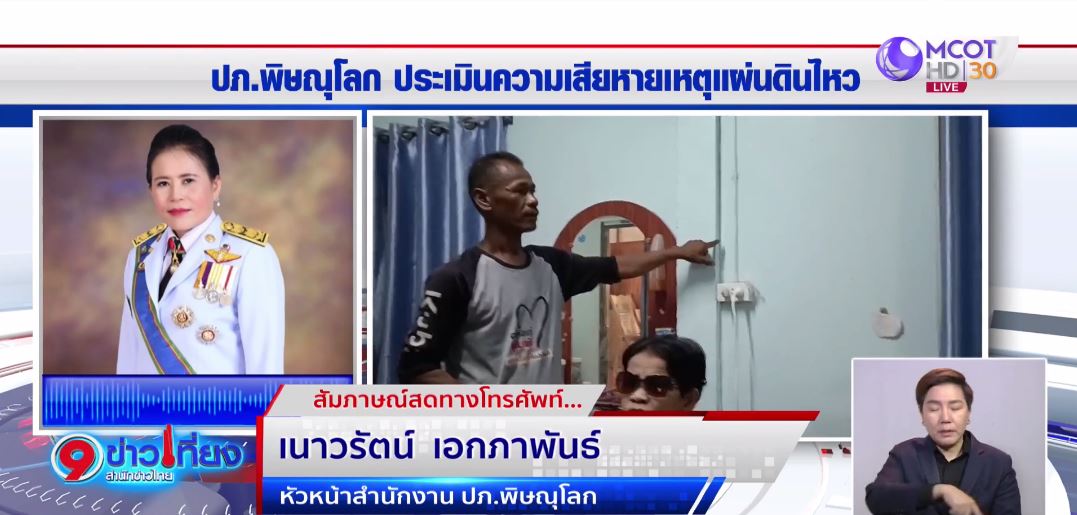29 มิ.ย. – ปภ.พิษณุโลก เร่งสำรวจความเสียหาย หลังเกิดแผ่นดินไหวที่ อ.บางกระทุ่ม จ.พิษณุโลก ขนาด 4.5 ลึก 5 กม. เมื่อกลางดึกที่ผ่านมา เฝ้าระวังอาฟเตอร์ช็อก จังหวัดที่รับรู้แรงสั่นสะเทือนรุนแรงมากกว่าที่อื่นคือ พิษณุโลก กำแพงเพชร พิจิตร . – สำนักข่าวไทย