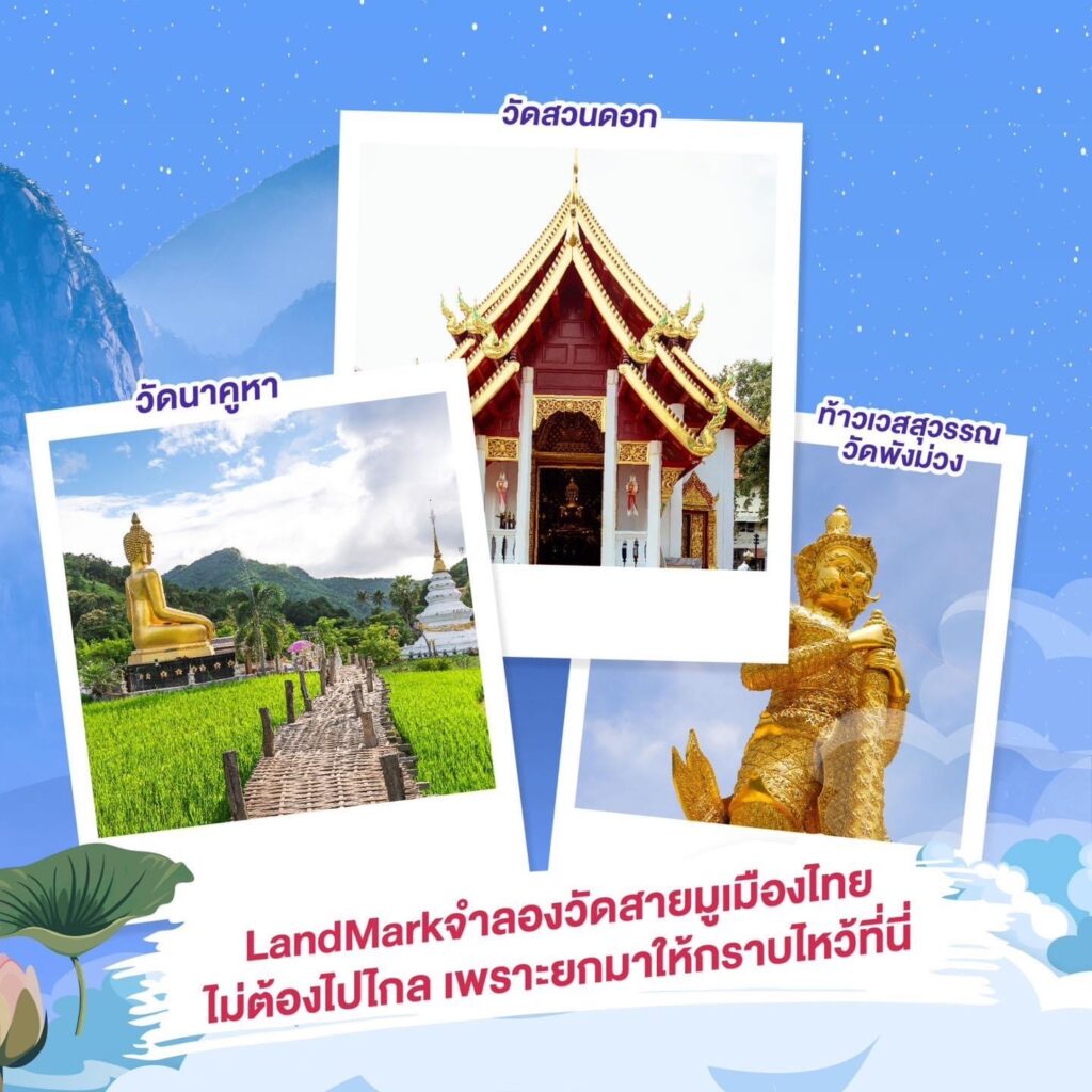 ภายในงานนี้ ททท. ยังได้จำลองแลนด์มาร์กสิ่งศักดิ์สิทธิ์ 3 แห่ง ให้ผู้เข้าร่วมงานได้สักการะบูชาและเสริมสิริมงคลสร้างแรงบันดาลใจสู่การเดินทางจริงในพื้นที่ ได้แก่ เจดีย์วัดสวนดอก จังหวัดเชียงใหม่ พร้อมสักการะพระเจ้าเก้าตื้อขอพรความรักของเหล่าคนโสด