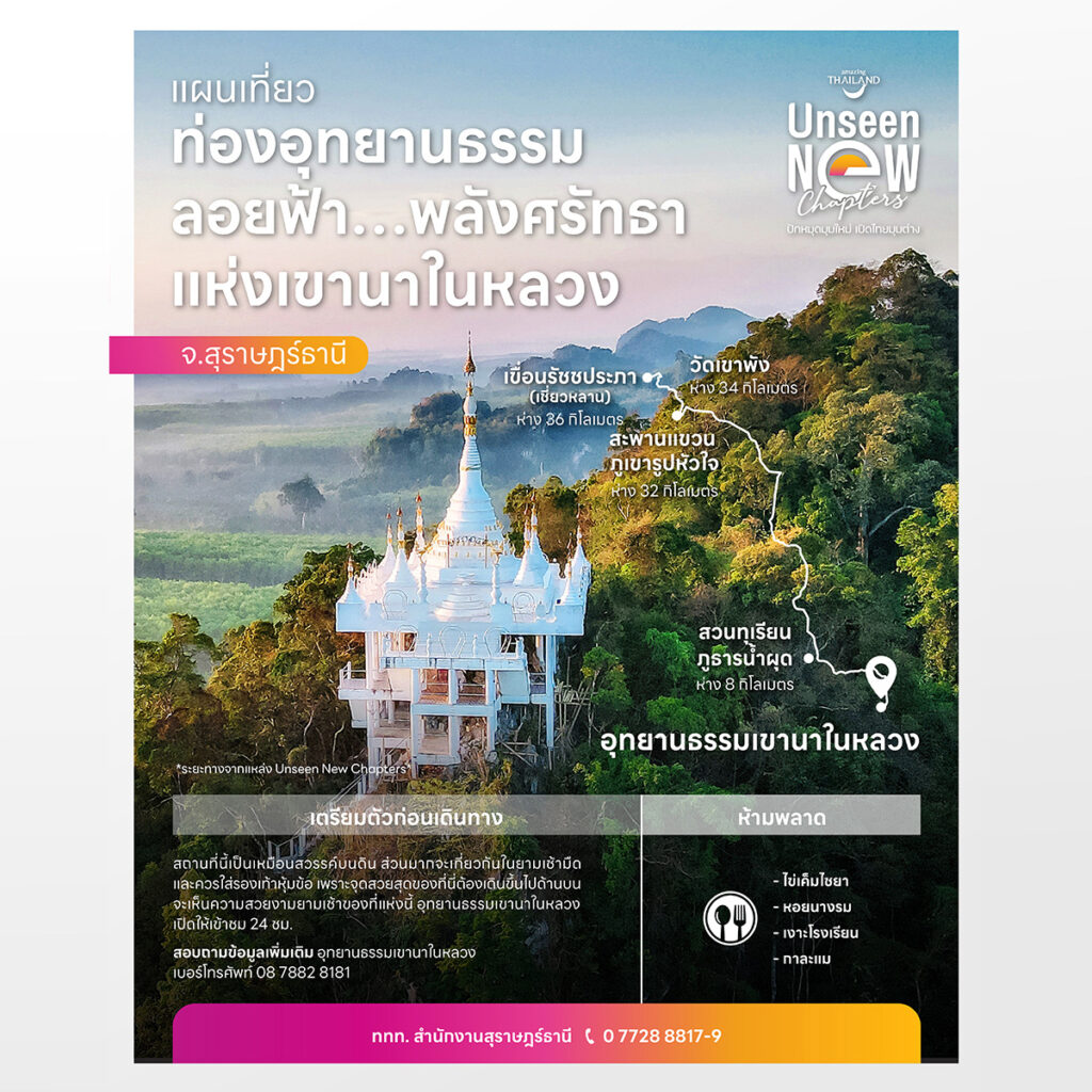 • ท่องอุทยานธรรมลอยฟ้า…พลังศรัทธาแห่งเขานาในหลวง อุทยานธรรมเขานาในหลวง อ.พนม จ.สุราษฎร์ธานี