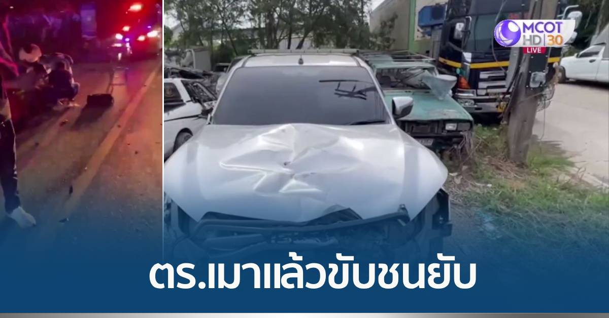 ส่วนรถคู่กรณีเป็นรถกระบะแคป สีบรอนซ์เงิน ช่วงหน้าพังยับถึงห้องเครื่อง หลังคารถติดสัญญาณไซเลน คนขับเป็นตำรวจอยู่ในอาการมึนเมา