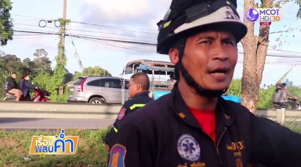 อาสากู้ภัยสว่างพรกุศลระยอง ให้การว่า กำลังเดินทางนำเครื่องมืออุปกรณ์ตัดถ่างไปช่วยเหลือผู้ประสบอุบัติเหตุรายหนึ่งที่ติดอยู่อยู่ภายในรถ บริเวณแยกศาลาแดง ต.ตะพง อ.เมืองระยอง ขับตามหลังกันไป 3 คัน รถตู้คันเกิดอุบัติเหตุนำหน้า พอมาถึงบริเวณที่เกิดเหตุปรากฏว่ามีรถเก๋งขับออกมาจากถนนซอยฝั่งซ้าย แล่นขึ้นมาบนถนนชิดฝั่งขวาตัดหน้าขบวนรถกู้ภัยที่เปิดไซเรนวิ่งมา ทำให้รถตู้กู้ภัยที่นำหน้าพุ่งชนเสียงดังสนั่น จนรถเก๋งกระเด็นหงายท้อง ร่างคนขับลอยละลิ่วจากรถตกกระแทกร่องน้ำเสียชีวิต
