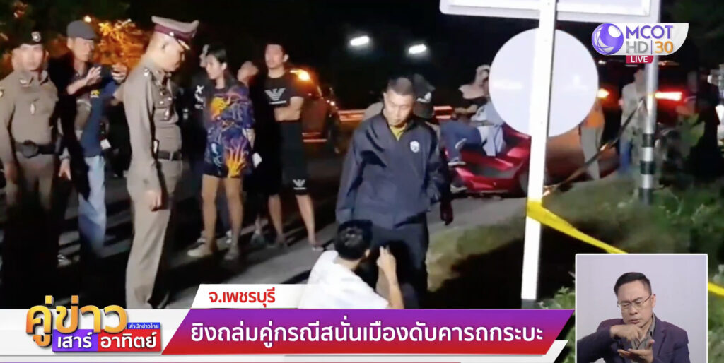 ช่วงกลางดึกที่ผ่านมา ตำรวจ สภ.ย่อยราชภัฏเพชรบุรี รับแจ้งเหตุทะเลาะวิวาทและมีผู้ถูกยิงบริเวณถนนข้ามทางรถไฟ อ.เมือง จ.เพชรบุรี จึงรุดไปตรวจสอบพร้อมเจ้าหน้าที่ที่เกี่ยวข้อง พบรถกระบะสภาพพุ่งเข้าป่าริมทาง ที่เบาะคนขับพบผู้เสียชีวิตชื่อ นายสุริโย สภาพไม่สวมเสื้อ ถูกยิงเข้าที่ศีรษะด้านซ้าย และใต้รักแร้ขวา รวม 6 แผล บริเวณรถยนต์มีร่องรอยกระสุนหลายจุด และมีคราบเลือดติดอยู่บริเวณข้างตัวรถและท้ายรถกระบะ พบปลอกกระสุนและหัวกระสุนปืนขนาด 9 มม. และขนาด 11 มม. ตกกระจายอยู่บนพื้นถนน และห่างไปประมาณ 50 ม.จากที่พบปลอกกระสุน พบรถจักรยานยนต์ของผู้ก่อเหตุจอดทิ้งไว้