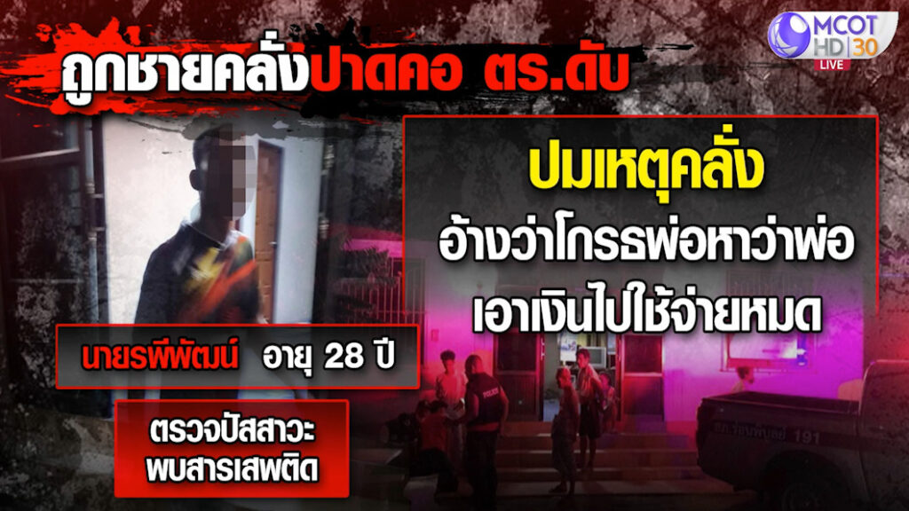 นครศรีธรรมราช 8 ก.ค.-ตำรวจ สภ.ร่อนพิบูลย์ เข้าระงับเหตุชายเสพยาคลุ้มคลั่ง พลาดถูกปาดคอเสียชีวิต ผู้ต้องหาอ้างโกรธพ่อเอาเงินไปใช้หมด