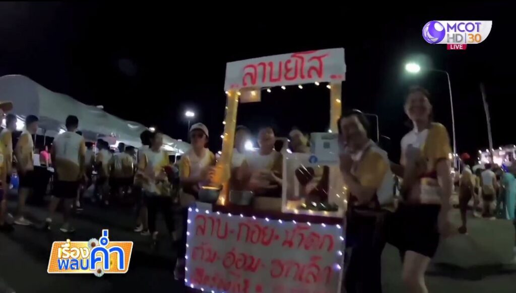 พี่เติ้งได้บอกว่า จ.ยโสธร โด่งดังเรื่องประเพณีบุญบั้งไฟ มองว่าผู้เข้าวิ่งที่แต่งชุดแฟนชีจะเน้นเรื่องบั้งไฟแน่นอน แต่ตนมีอีกอย่างที่เวลาเดินทางทุกคนจะสังเกตเห็นป้ายลาบยโสธร จึงนำวัสดุเหลือใช้มาตกแต่งเป็นร้านลาบยโสธร การวิ่งครั้งนี้ยอมรับว่าวิ่งเข้าลำดับสุดท้าย เพราะร้านลาบใหญ่มาก และขณะวิ่งตามทางก็มีคนมาขอถ่ายรูปเป็นจำนวนมาก . – สำนักข่าวไทย